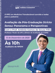 Data da publicação: 10 de novembro de 2025 Categoria: Cursos e EventosO Programa de Pós-Graduação em Medicina Translacional (PPGMT) tem a honra de convidar toda a comunidade acadêmica para a palestra intitulada: